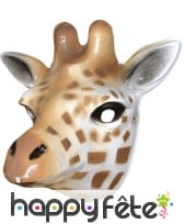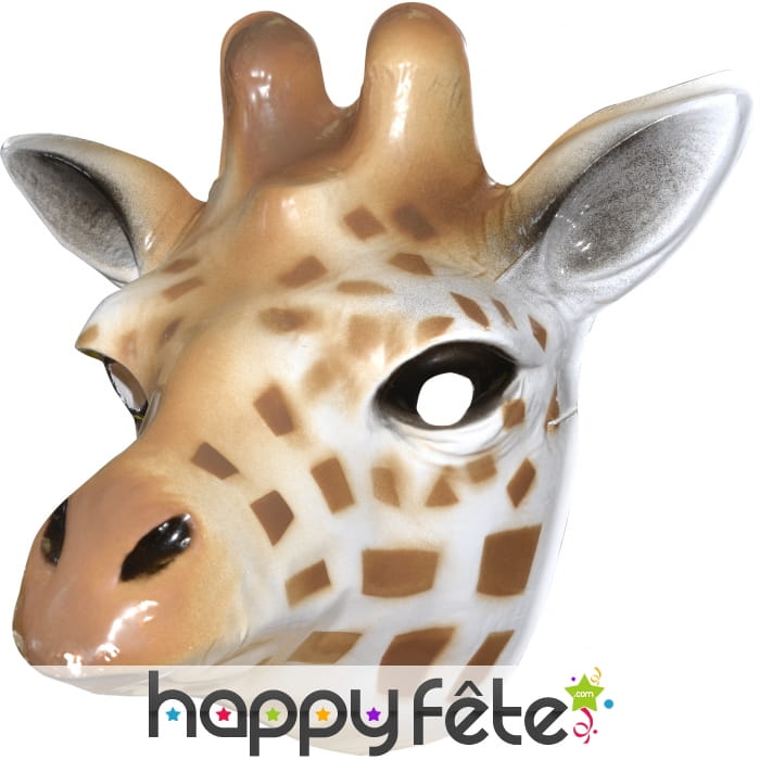Masque pour adulte entièrement fabriqué en plastique de couleur beige, blanche, noire et marron représentant une girafe. Ce masque a la particularité d'être fait aux dimensions d'un visage adulte.