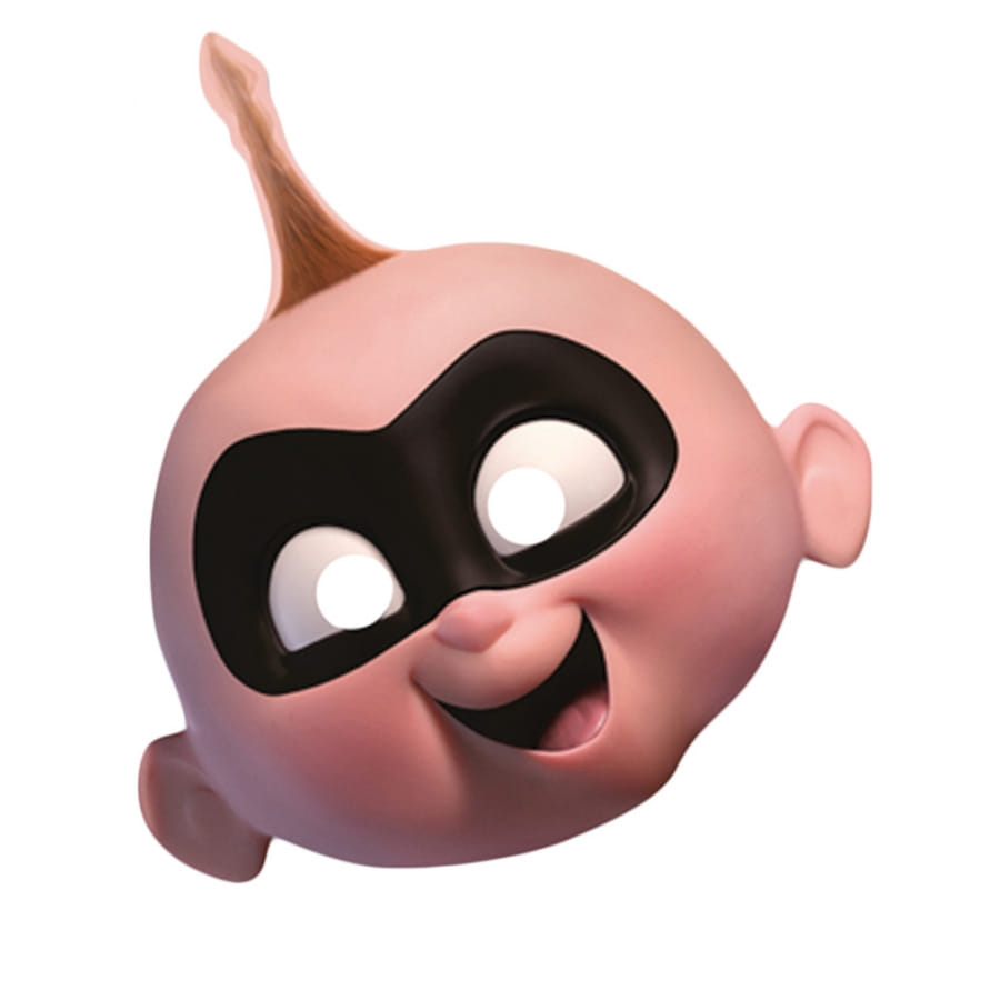 Ce masque est idéal pour plonger dans l'univers des Indestructibles car il est aux traits du petit Jack-Jack, avec son grand sourire et son masque noir.