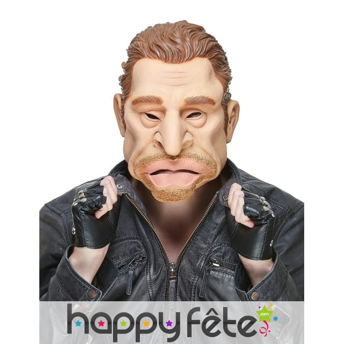 Ce masque en latex présente les traits caricaturés mais très reconnaissables de l'ancienne icône du rock français.