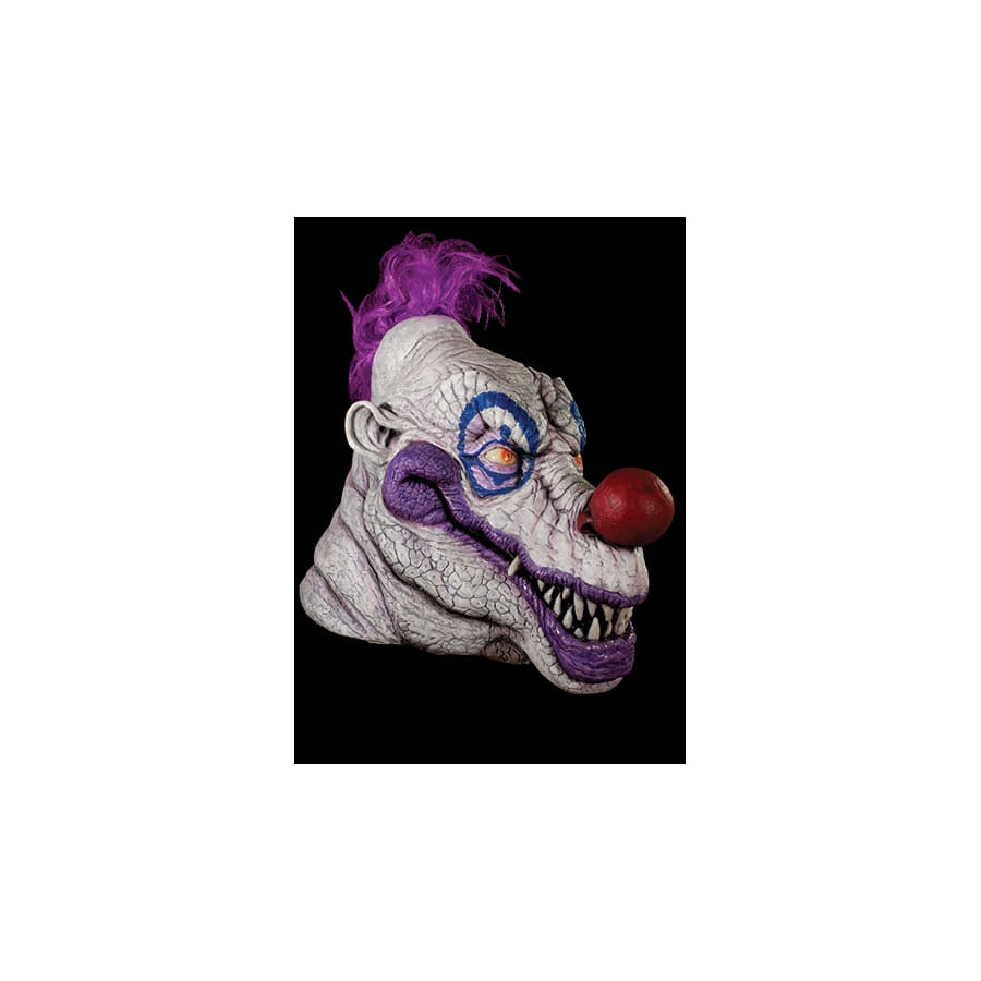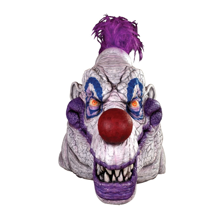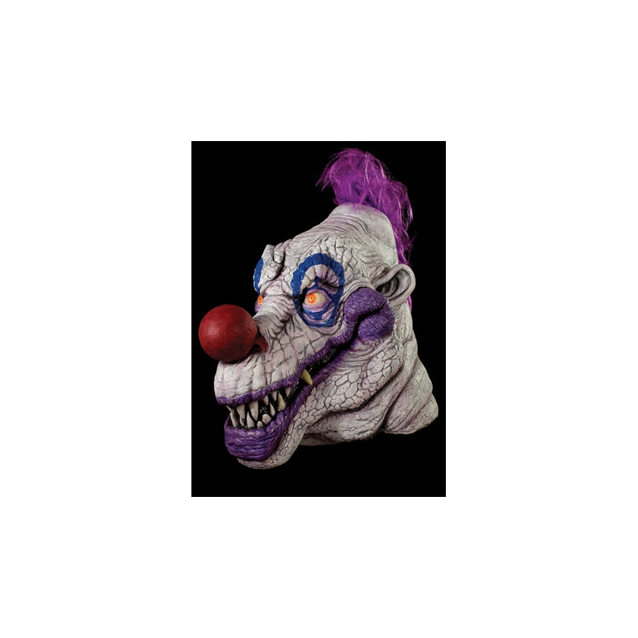 Incarnez le chef des clowns tueurs! Nous vous proposons ce masque de Jojo Klownzilla, le clown violet qui est l'antagoniste principal du film "Klownzilla". Ce masque est en latex, et couvre entièrement la tête. Il est dédié aux hommes, à porter le soir d'Halloween, bien entendu, ou pour toute autre occasion souhaitée. Beaucoup de gens pourront porter un costume de clown tueur à l'occasion d'Halloween, mais vous serez le chef, c'est certain !