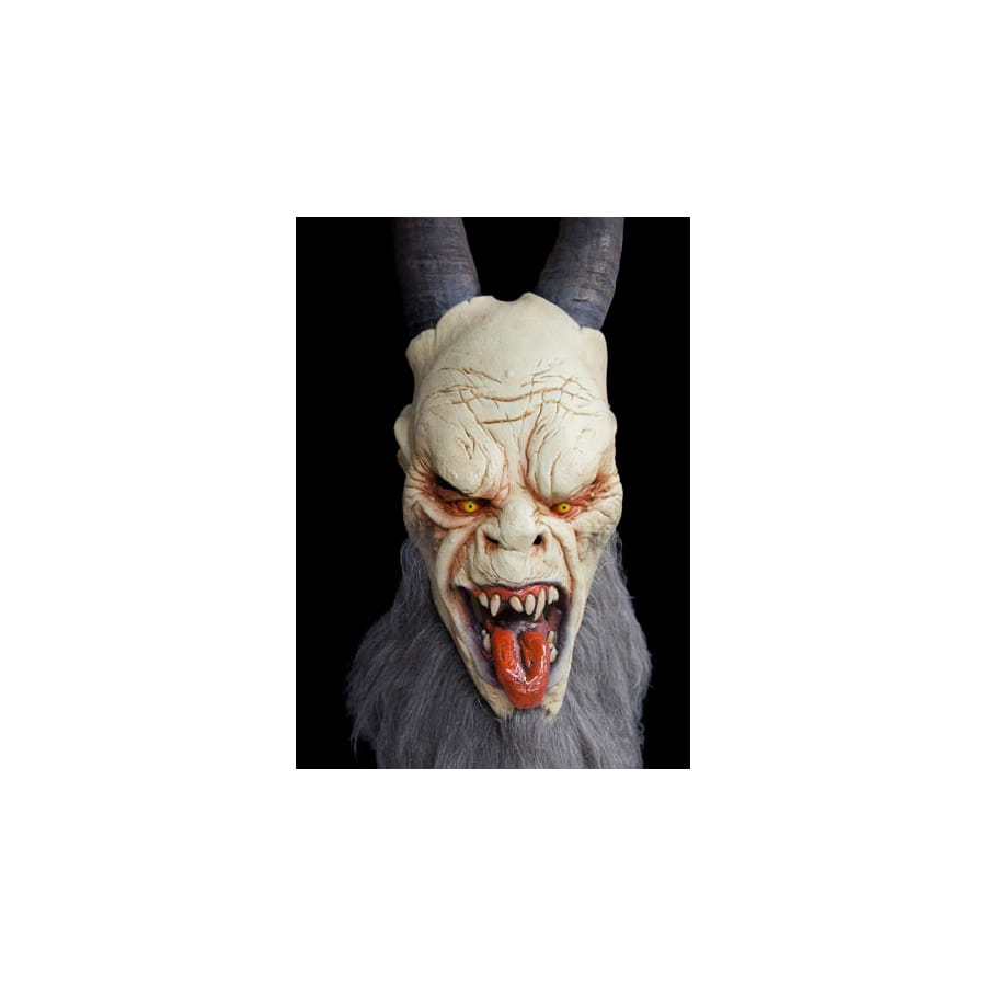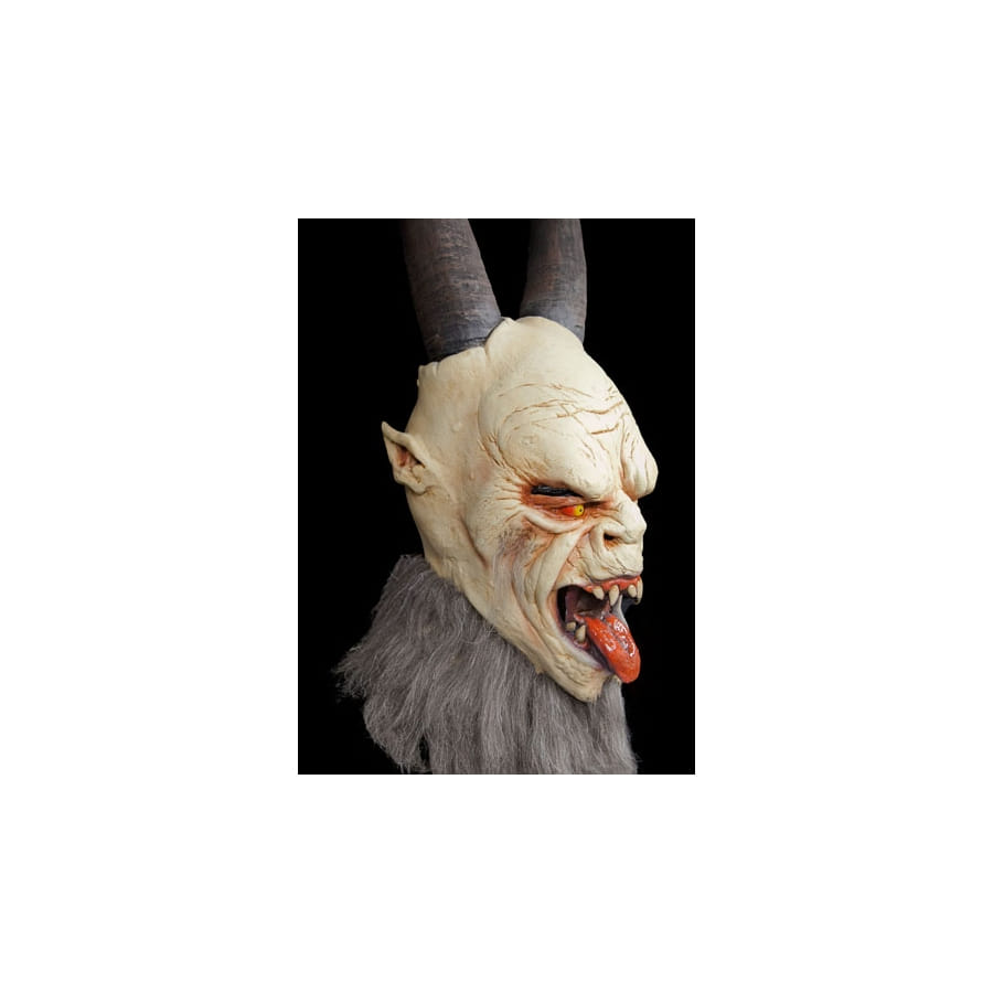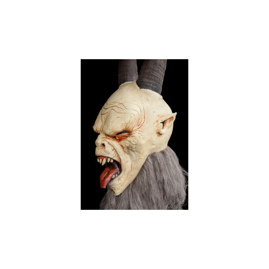 Incarnez un Krampus, la créature monstrueuse à cornes, qui accompagne Saint Nicolas dans différentes régions du monde le temps de Noël, avec ce masque super réaliste. Il est fait en latex souple, représentant un Krampus malveillant, avec un teint beige, de longues cornes et des poils gris, et qui tire sa langue. Il vous enveloppera toute la tête. Ce sera un masque parfait pour Halloween, bien entendu, mais aussi pour Noël, si vous souhaitez accompagner Saint Nicolas, et être au centre de tous les regards.