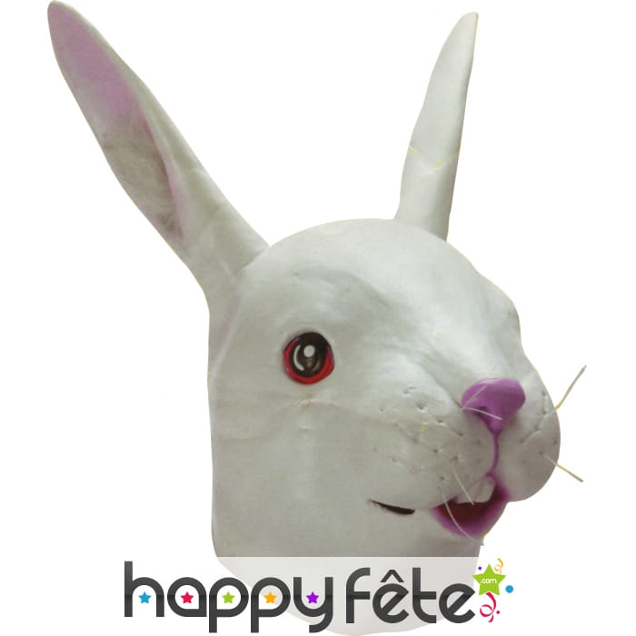 Masque pour homme ou femme, représentant une tête de lapin complète de couleur blanche et rose. Grâce à cet accessoire, vous obtiendrez un déguisement très tendre et doux pour une fête basée sur le thème des animaux.