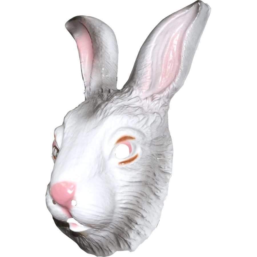Masque entièrement en plastique pour homme ou femme, représentant un lapin de couleur blanc, gris et rose. Avec cet accessoire, vous vous transformerez en adorable petit lapin juste le temps d'une soirée!