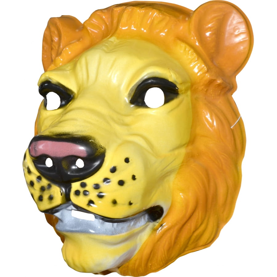 Masque entièrement en plastique pour homme ou femme, représentant un lion de couleur jaune et orange avec yeux et museau noir. Avec ce masque, vous serez le roi de la savane pendant la soirée entière!