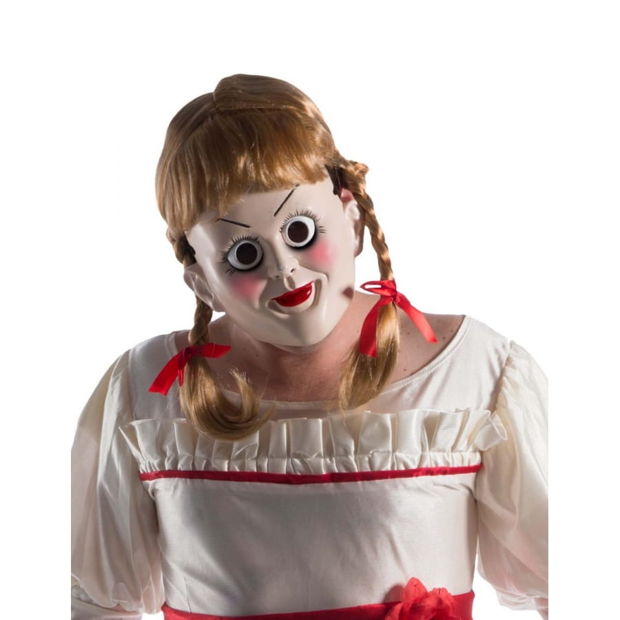 Le masque en plastique représentant le visage de la poupée Annabelle avec cheveux synthétiques est pour femme.