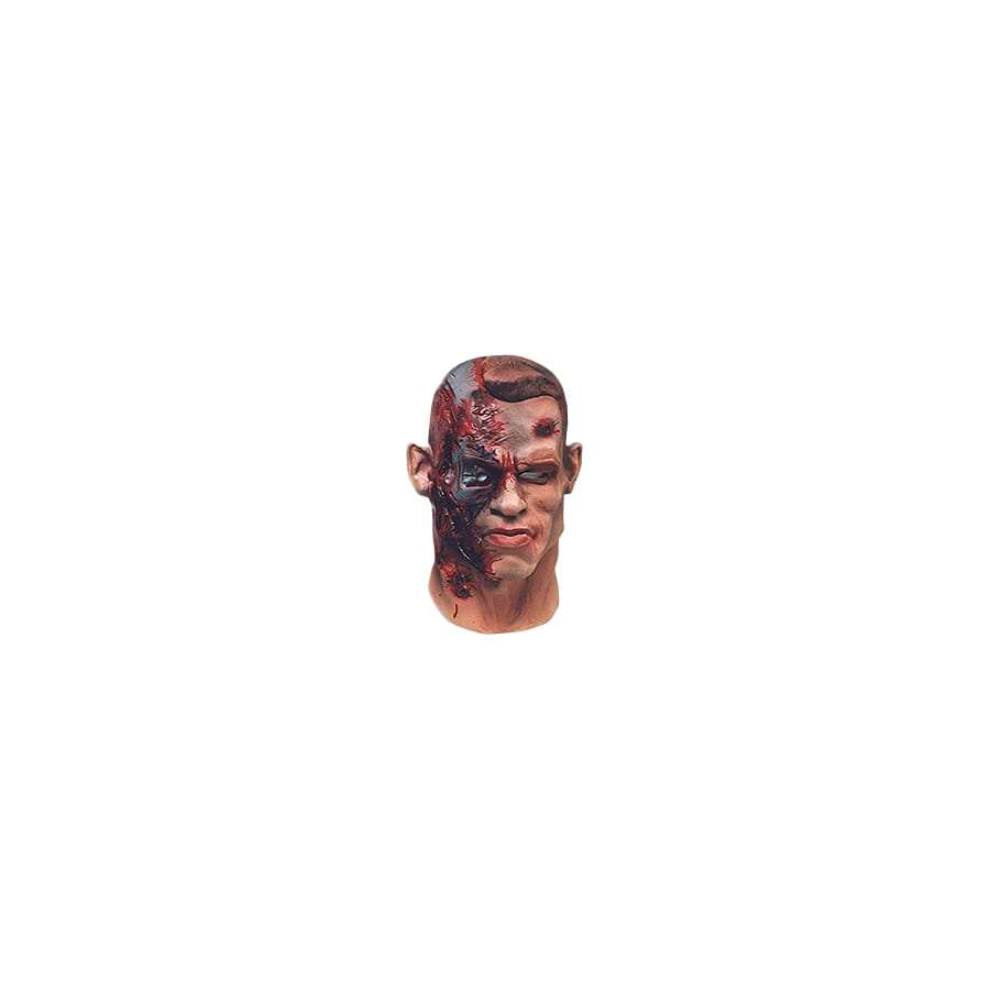 Masque en latex représentant le visage défiguré d'un robot. Cet accessoire pour homme ou adolescent est de couleur beige, noire et rouge. Ce masque vous rappellera Arnold Schwarzenegger dans le rôle du Terminator. Déguisez-vous en abominable robot pour une soirée pleine de frayeur.