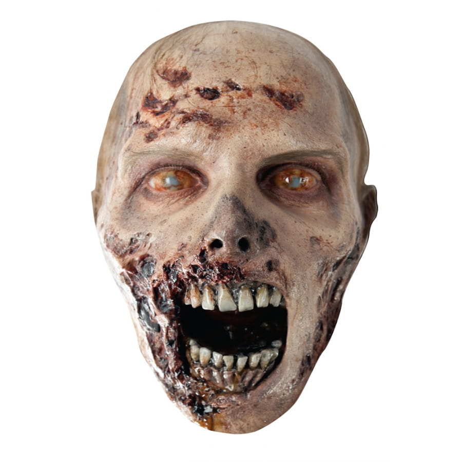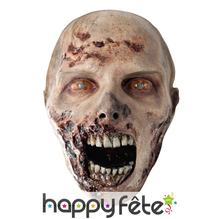 Ce masque que nous proposons ici représente un de ces rôdeurs du film "The Walking Dead", ce sont des hommes transformés en horribles zombies. Le masque, sous licence officielle, est en carton plat, et recouvre l'avant du visage. Celui que vous voyez ici mesure environ 30 cm x 23.5 cm. Avec ce visage ravagé, ces yeux jaunes, ces horribles dents, ... ce masque est vraiment monstrueux ! N'est-ce pas l'idéal pour fêter Halloween ? Qui osera rester près de cet horrible homme cadavérique super répugnant ?