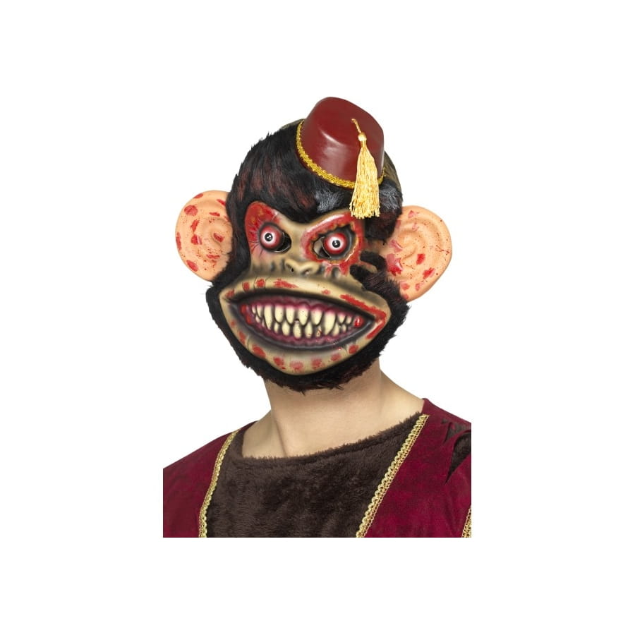 Messieurs, si vous recherchez du réalisme pour votre costume d'halloween, nous vous proposons le masque de singe jouet zombie. En effet, avec son pelage marron taché de sang, vous serez méconnaissable et vous créerez la panique. Le masque esquisse un large sourire terrifiant avec ses longues dents acérées. Les grandes oreilles en éventail donneront encore plus de caractère à ce masque. Sa tête porte un petit chapeau de couleur rouge et dorée.