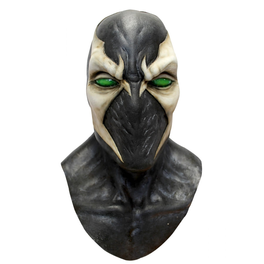 C'est un accessoire très réaliste illustrant le visage blanc et noir aux yeux verts du célèbre personnage de comic book spawn.