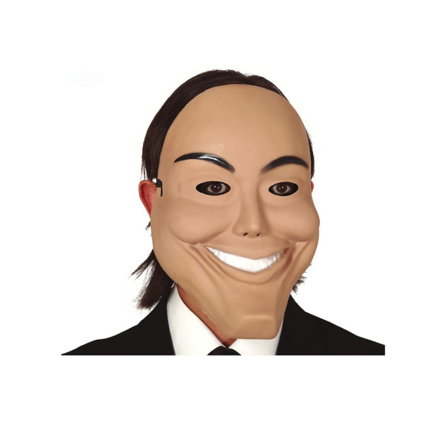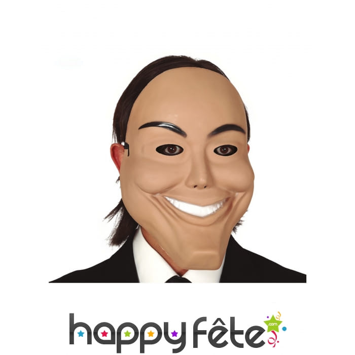 De couleur beige, il s'agit d'une parfaite imitation d'un visage de psychopathe avec des cheveux noirs.