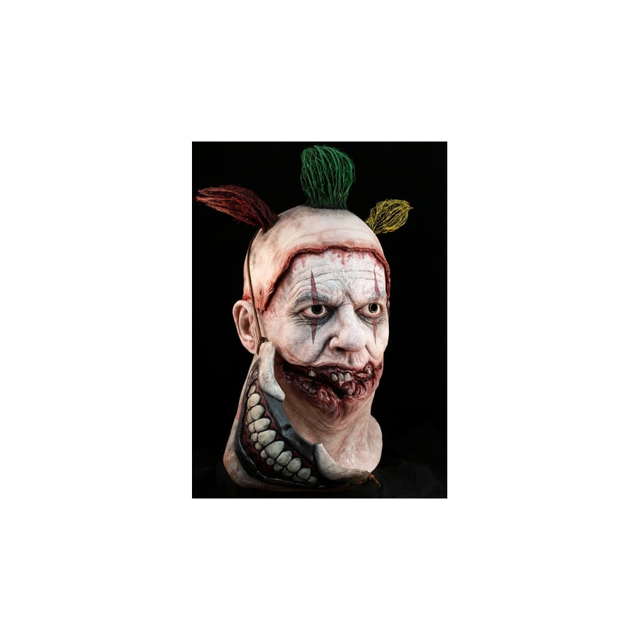 Ce masque de Twisty le clown est une imitation plus que parfaite. Il ressemble comme deux gouttes d'eau à Twisty the clown, le personnage de la série américaine Horror Story. C'est un masque complet, il recouvre l'intégralité de la tête. D'ailleurs, la bouche à grosses dents que vous voyez là se détachera si vous enlevez l'élastique, et une autre bouche déjà ravagée apparaîtra à sa place. N'hésitez plus et choisissez ce masque si vous voulez, vous aussi, être le meurtrier de la ville qui terrorise tant les gens, mais uniquement pour Halloween s'il vous plaît !