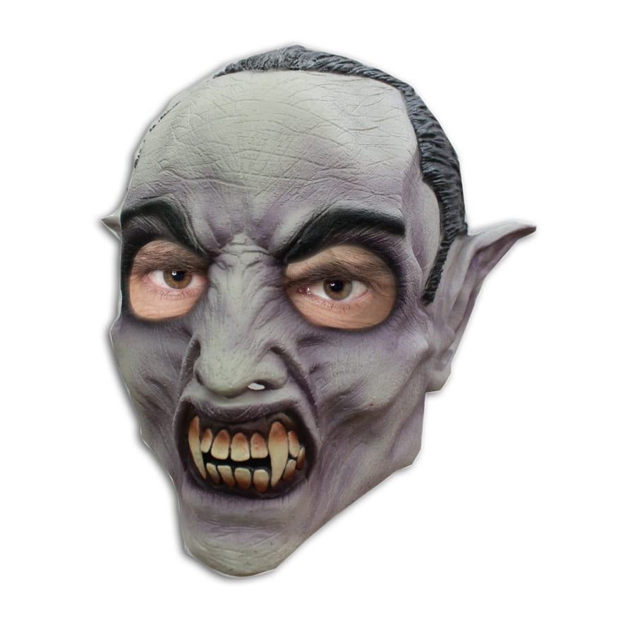 Avec ce masque, vous serez le type de personnage que personne ne désirerait croiser lors de la nuit du 31 octobre : un méchant vampire avide de sang. Il représente un vampire gris qui montre ses dents et ses longues canines pointues. Il semble que ce vampire ait très soif et qu'il soit prêt à vider le sang frais d'innocents humains. Ce masque est en latex, et couvrira l'intégralité de votre tête. Ne le ratez pas !