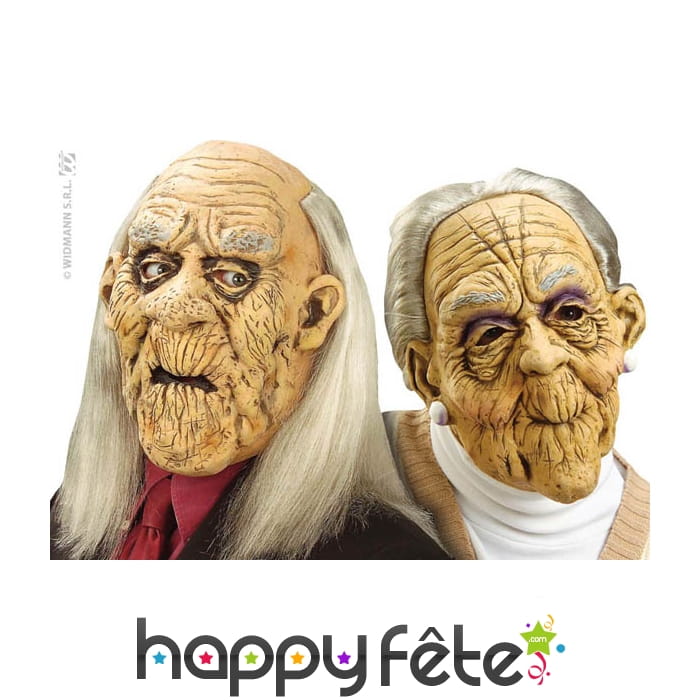 Masque de vieil homme ou de viellle femme avec peau beige et cheveux gris pour couple. Au moment de passer la commande, vous ne pourrez choisir ni le modèle ni la couleur des masques. Vous les recevrez comme présentés.