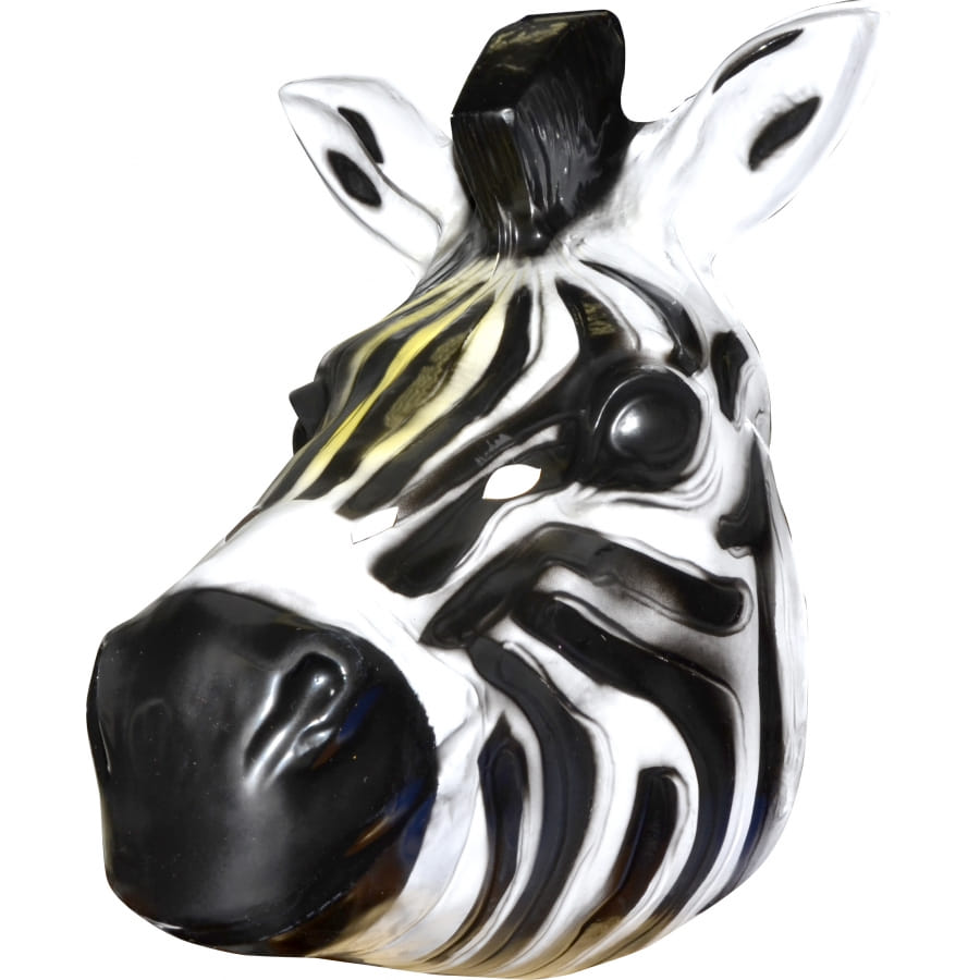 Masque entièrement fabriqué en plastique pour homme ou femme, représentant un zèbre de couleur blanche et noire. Utilisez ce masque pour vous fondre dans la foule lors d'un carnaval basé sur le thème des animaux.