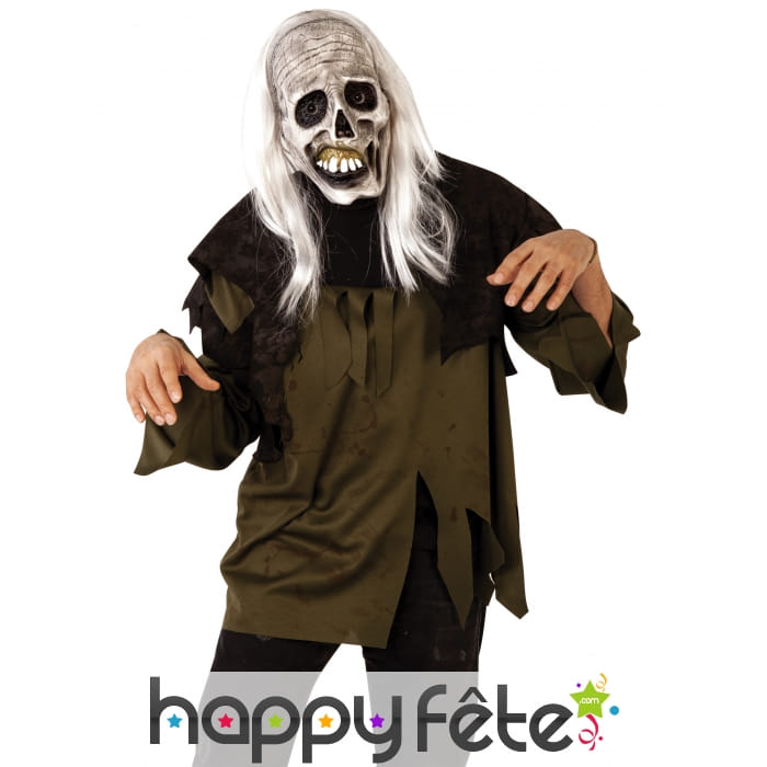 Le masque de zombie avec cheveux pour adulte fera hérisser des poils dans le dos à Halloween.