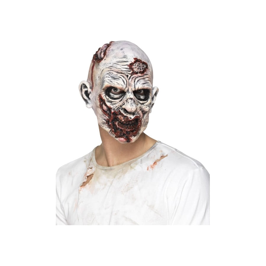 Si pour la fête des morts, vous avez décidé de vous déguiser en zombie, essayez le masque de zombie en mousse de latex. Ce masque qui joue judicieusement sur un mariage de blanc, de gris, de rouge et de noir, fera trembler de peur toutes les personnes qui vous croiseront. Il recouvre jusqu'à l'arrière de la tête. Il laisse entrevoir les dents et la cervelle à travers les blessures.