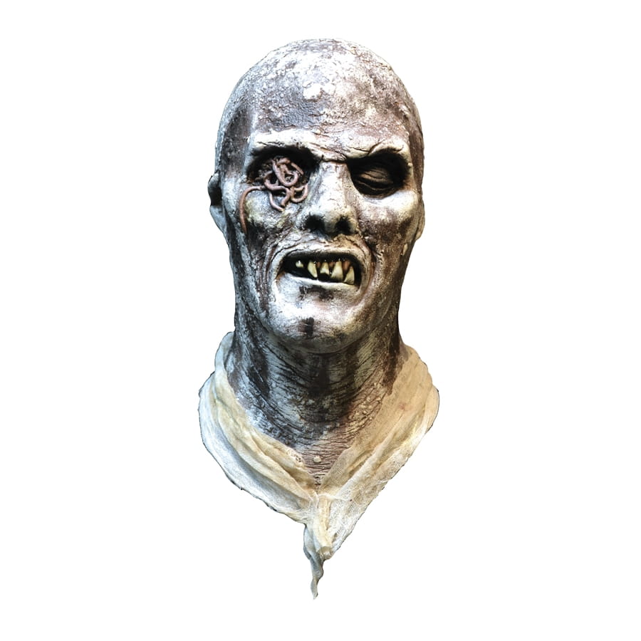 Votre prochaine soirée Halloween sera infestée de morts-vivants, tout comme l'île tropicale du film "L'enfer des zombies", si vous portez ce masque. Ce dernier représente parfaitement la tête de ces créatures sanguinaires, inspiré de ce film d'horreur, ce sont des zombies. Il est en latex, et cache l'intégralité de la tête. Ce masque suscitera, à coup sûr, un terrible effroi et un écoeurement au plus haut degré, ce qui est parfait si vous souhaitez fêter Halloween comme il se doit. Notez qu'il est de taille adulte.