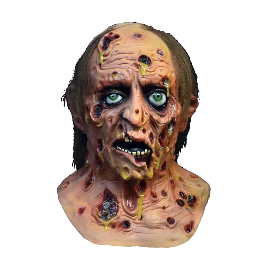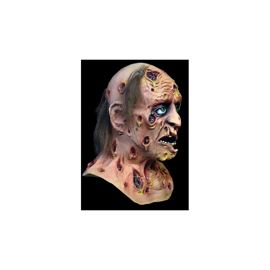 Mais qu'est ce qui est arrivé à ce pauvre zombie ? Ce masque que vous voyez ici représente un zombie infecté d'une maladie très grave, il y a de grosses plaies avec du liquide jaune visqueux coulant partout sur sa peau. Un zombie est déjà monstrueux, mais encore plus quand il est malade ! Ce masque est en latex et couvre l'intégralité de la tête. Croyez-nous, vous ne trouverez pas mieux que ce masque pour fêter Halloween !