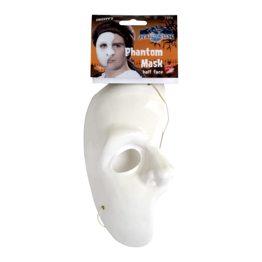Masque en forme de demi-visage de fantôme blanc, pour homme. Déguisez-vous en Fantôme de l'Opéra ou en personnage mystique pour une soirée déguisée.
