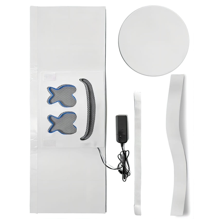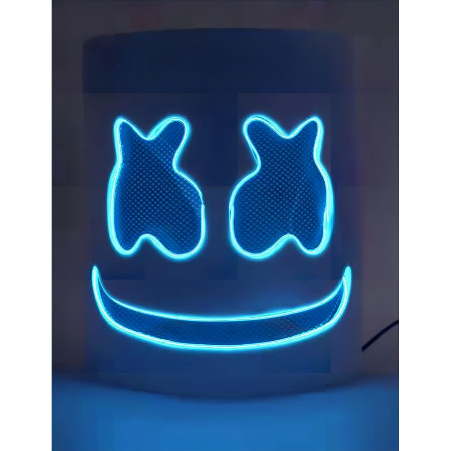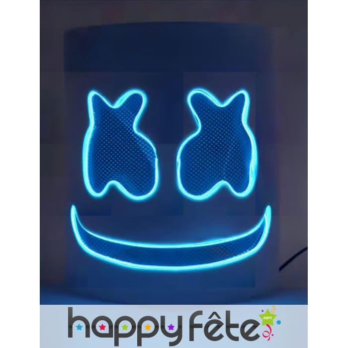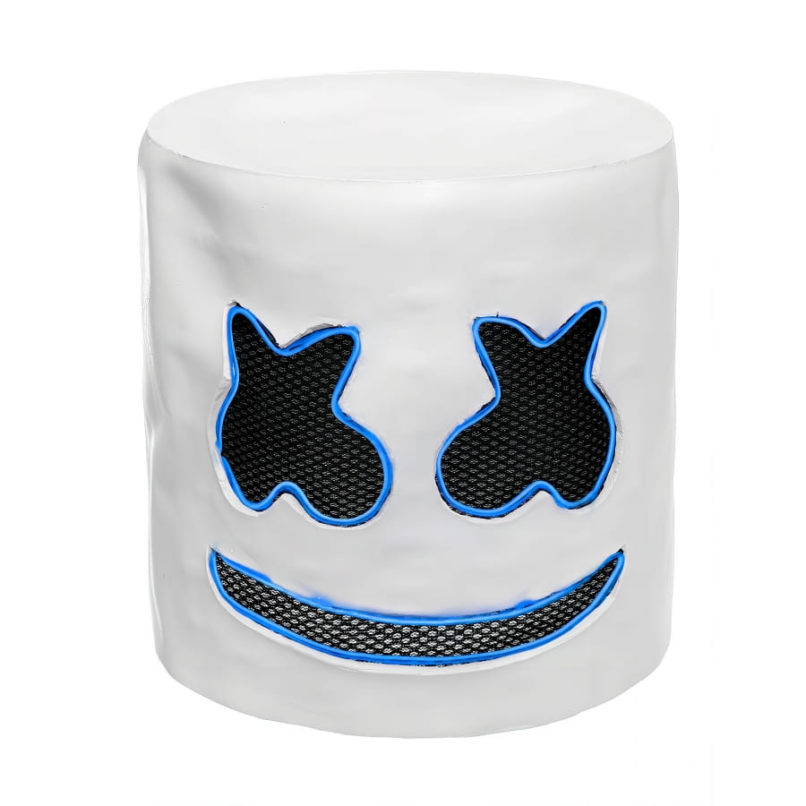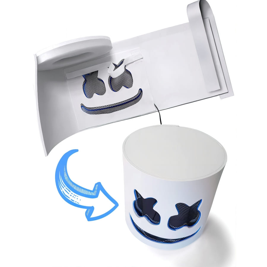 Avec ses dimensions généreuses de 22 cm de diamètre pour 25 cm de hauteur, ce masque pour adulte est en mousse blanche douce. Des ouvertures pour les yeux et la bouche vous permettront de voir et de respirer sans problème, tandis qu'un filet discret masque ces ouvertures pour un effet encore plus saisissant. Les LEDs bleues, elles, se chargeront d'attirer tous les regards, que vous choisissiez de les faire briller en continu, clignoter doucement ou s'agiter frénétiquement.