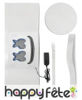 Pour le montage, tout est pensé pour être aussi simple que possible. Le masque vous est livré à plat, prêt à être assemblé avec une bande adhésive. L'élastique s'attache facilement grâce aux scratchs, et le boitier à piles (pensez à prévoir 2 piles AA, elles ne sont pas incluses) se connecte en un clin d'oeil.