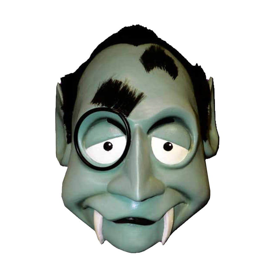 Soyez à la fois humoriste et terrifiant lors de la prochaine fête d'Halloween, avec ce magnifique masque du comte Dracula, personnage du film d'animation "Mad Monster Party". Ce masque contient un monocle sur l'oeil droit (fixé), de drôles de sourcils asymétriques assez épais, une bouche agrémentée de deux longues canines blanches acérées, et des cheveux noirs. Il est en latex souple, facile à porter. Alors, n'hésitez plus, prenez-le pour animer la fête !