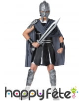 Masque et épée argenté de gladiateur, ce magnifique set contient un masque et une épée. Le masque argenté possède quelques parties sombres pour en augmenter le réalisme. Il couvrira l'avant du visage avec des ouvertures au niveau des yeux et de la bouche. L'épée dispose d'un manche noir et d'une lame argentée, également munie d'une touche noire au milieu. Cet accessoire est conçu pour homme, il fera de vous un redoutable gladiateur.