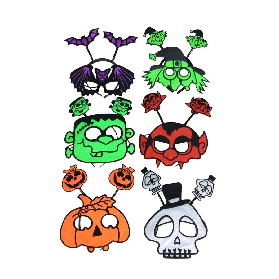 Ces petits articles d'Halloween pour adulte sont à votre disposition pour animer la soirée des morts vivants, ou pour divertir vos gosses à la maison le temps de cette soirée terrifiante. Ce sont des masques en mousse et des serre-têtes assortis, représentant plusieurs personnages, comme une citrouille, une tête de mort, une sorcière, etc... Ils sont de couleur différente et comprennent un masque et un serre-tête. Vous n'aurez pas le choix du modèle lors de la commande, ces produits seront livrés en fonction de la disponibilité en stock.