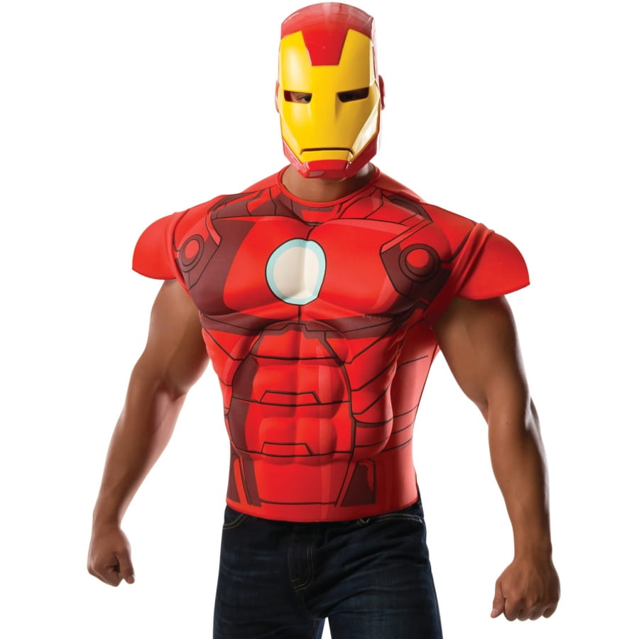 Devenez invincible lors du prochain carnaval en arborant cet ensemble masque et T-shirt de Iron Man musclé pour homme.