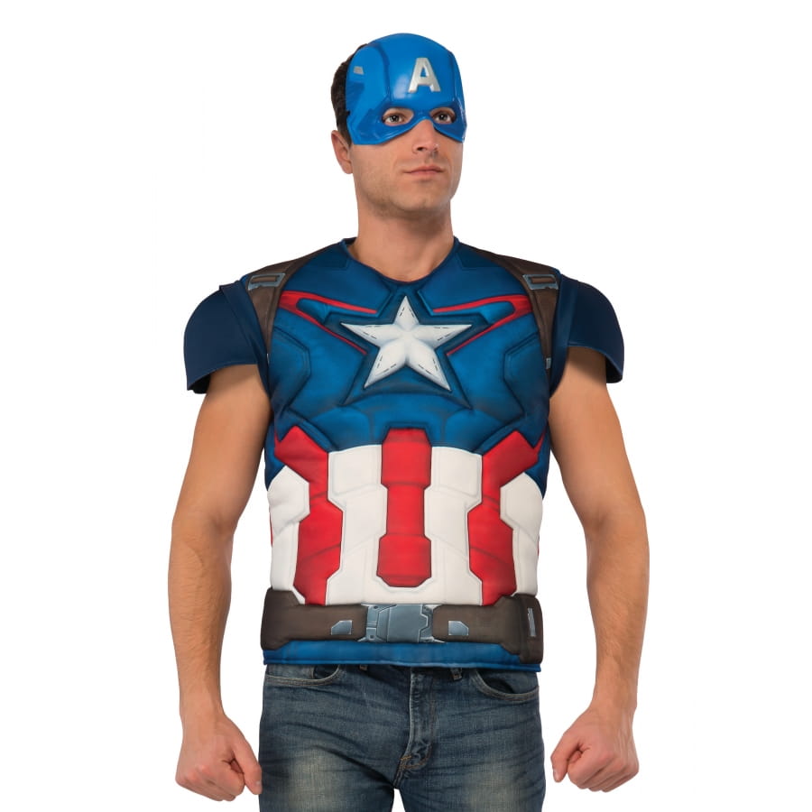 Simple et original ce costume composé d'un Masque et T-shirt musclé de Captain America, homme sera idéal pour vous transformer rapidement en super héros.