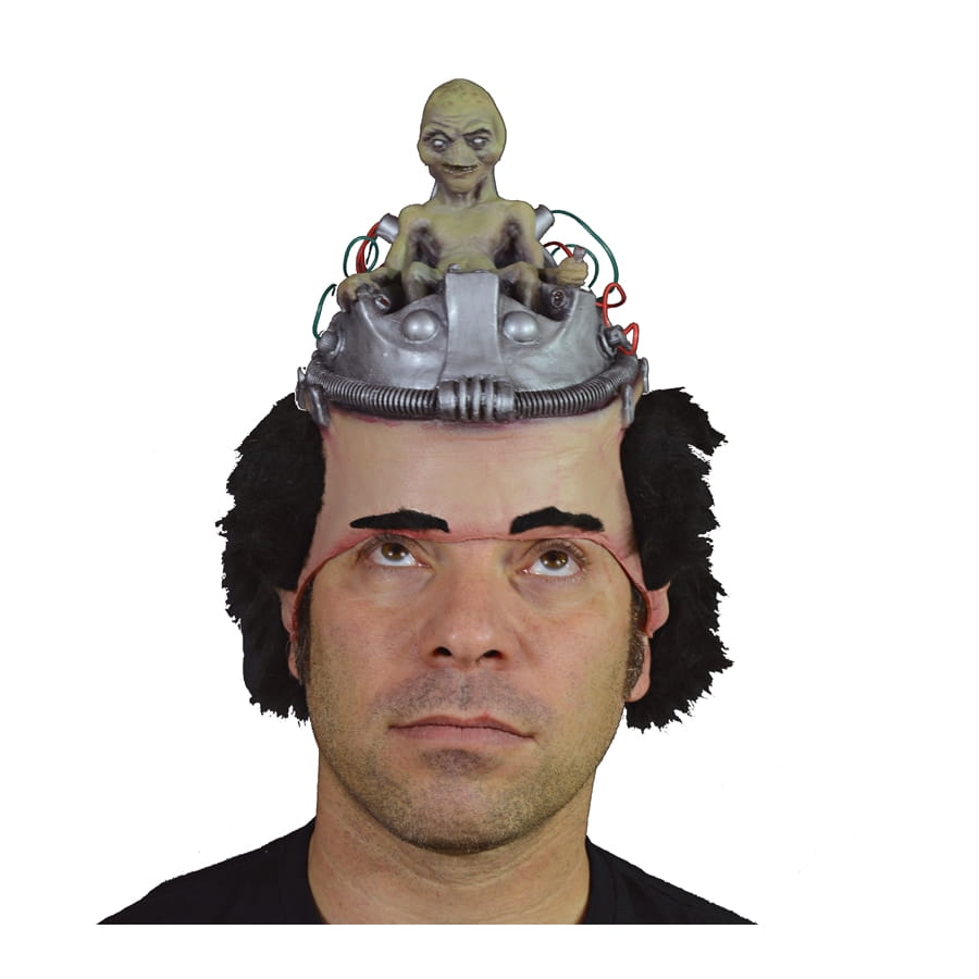 Chers Messieurs, donnez-vous un style unique pour ne pas passer inaperçu le soir d'Halloween, ou lors des fêtes déguisées, en complétant votre costume d'Alien ou d'extraterrestre avec ce masque hors du commun. C'est un masque en latex beige muni de cheveux noirs placés sur les deux côtés de la tête. Le masque recouvre le front, le crâne et la nuque, et supporte un petit Alien en ovni argenté. Il semble que l'ovni sorte de votre cervelle. Très drôle et très surprenant, ce masque fera de votre déguisement le plus convoité de la fête.
