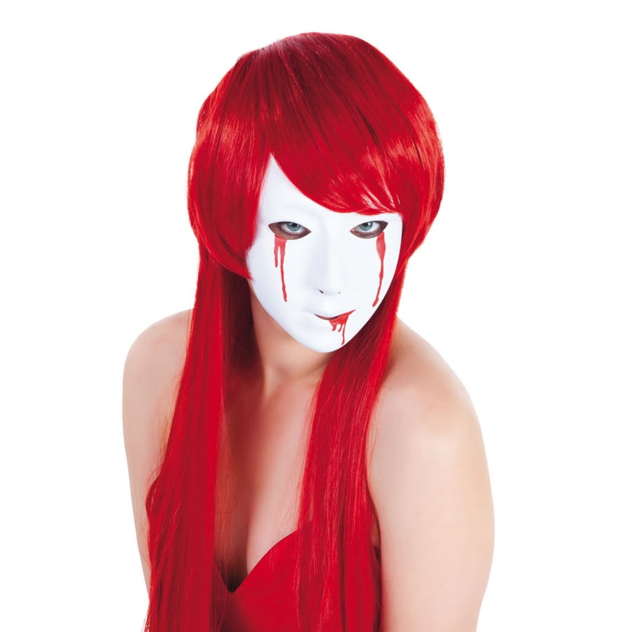 Le masque facial blanc uni féminin larmes de sang est la représentation d'un visage de femme ensanglanté.