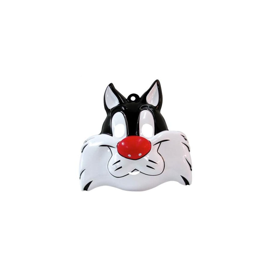 Sylvestre est à la recherche d'un compagnon qui l'aidera à attraper son canari favori. Vivez en direct les aventures de Titi et Grosminet en offrant ce masque facial de Grosminet pour enfant à votre petit ange. Ce modèle sous licence Cartoon représente exactement la tête du chat en noir et blanc avec un nez rouge, sans oublier les moustaches. Le masque couvre entièrement la partie avant du visage et il se fixe à l'aide d'un élastique. Il est doté de deux trous ronds pour les yeux.