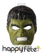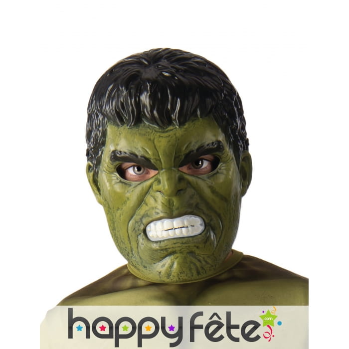 Le masque facial de Hulk pour enfant est en PVC vert.