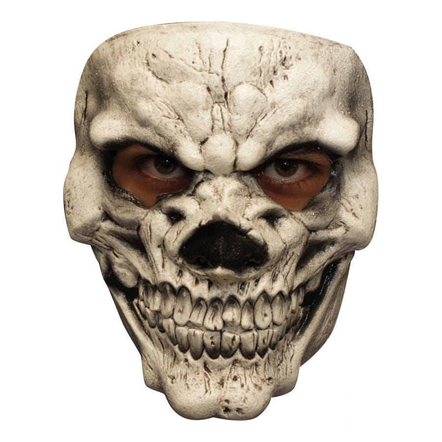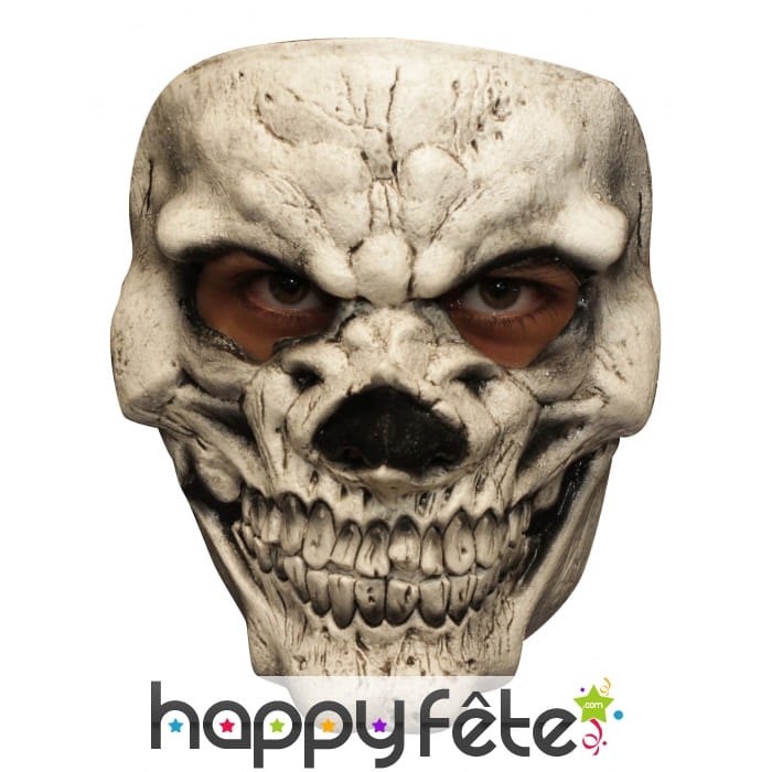 Grâce à ce superbe masque, vous pourrez incarner un redoutable mort vivant, et facilement semer la terreur le soir d'Halloween, ou lors de soirées Horreur entre amis. Il représente une vilaine tête de mort, de couleur beige. Des trous sont présents au niveau des yeux pour que vous puissiez bien voir vos victimes. Ce masque en latex cachera l'avant de votre visage. Notez qu'il est conçu pour les adultes.