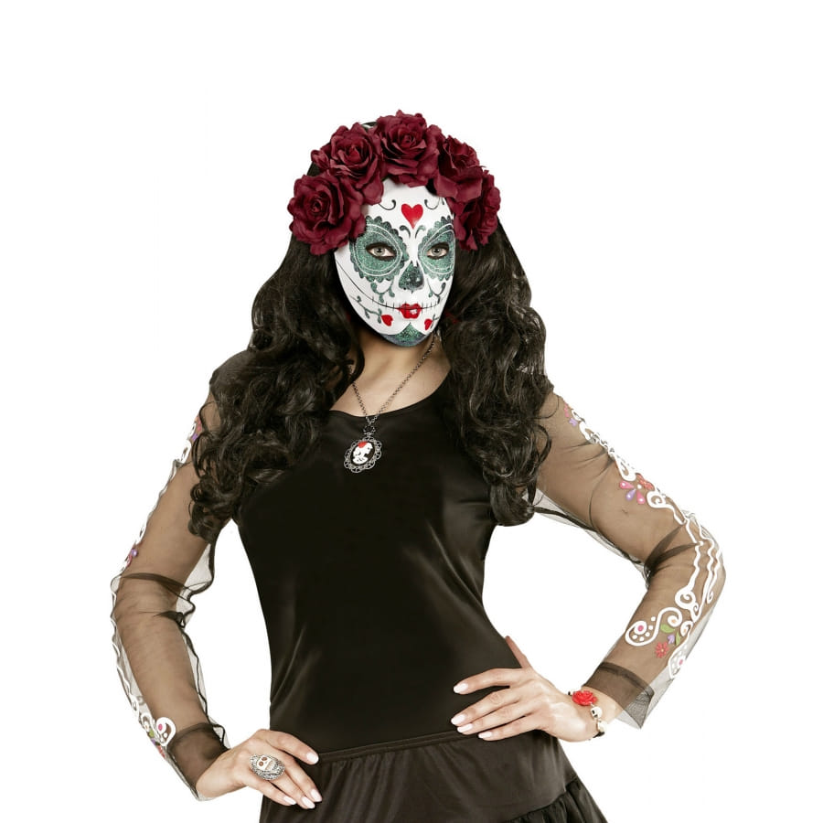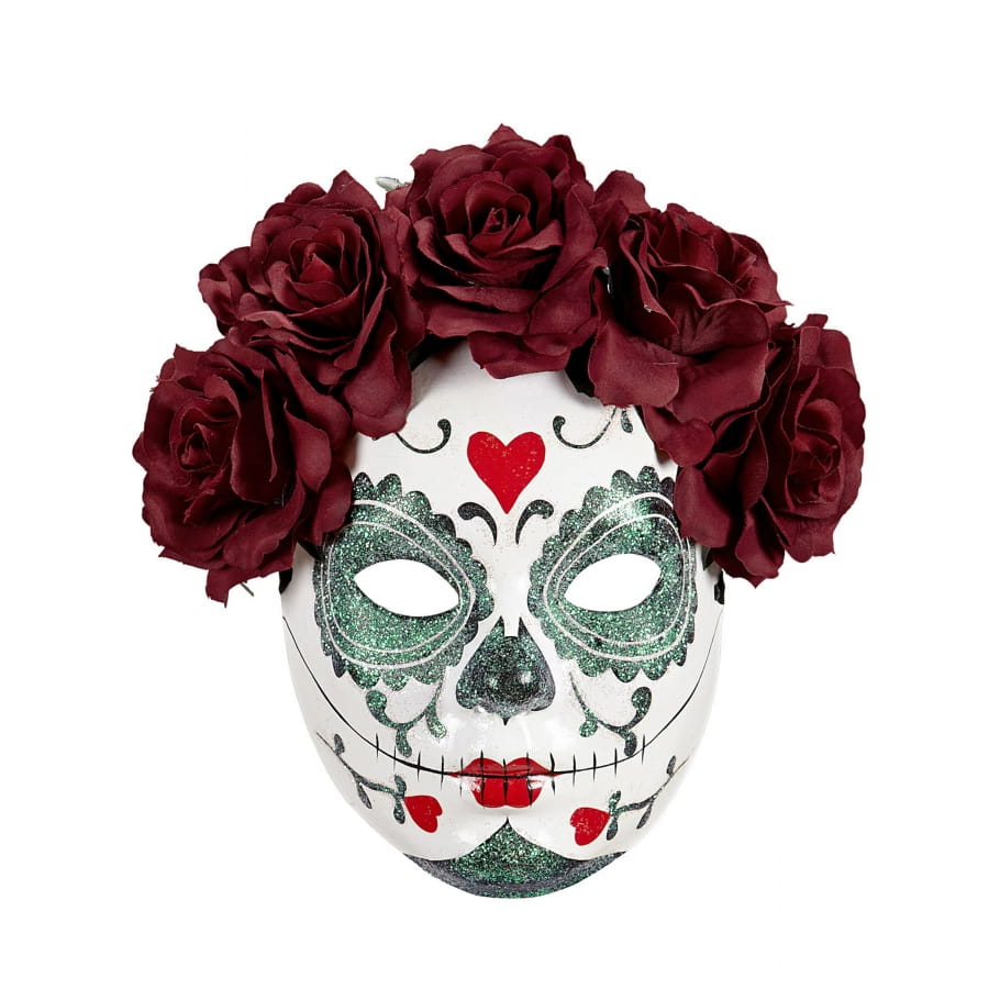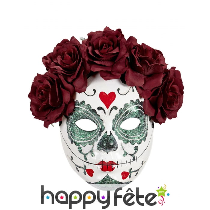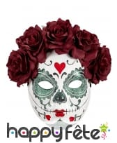 Le masque facial Dia de los muertos avec roses est destiné aux femmes.