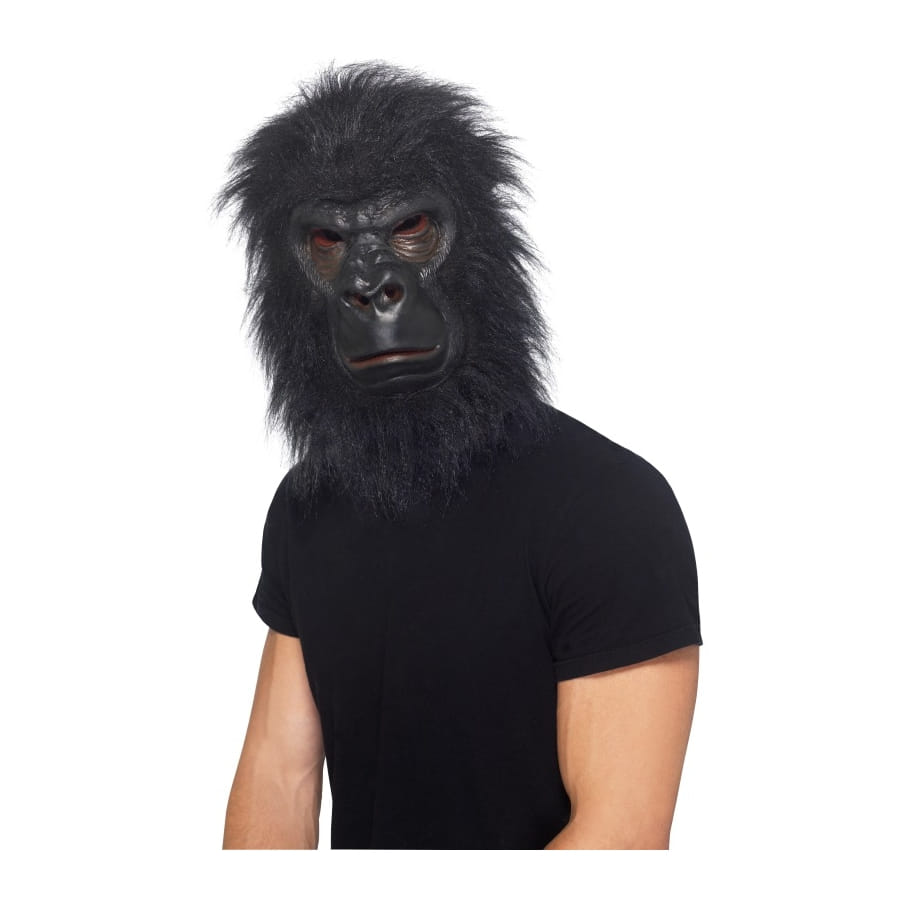 Masque de gorille entièrement de couleur noire, avec cheveux, pour homme ou adolescent. Cet accessoire vous donnera l'aspect d'un gorille terrifiant et de mauvaise humeur, idéal pour une soirée science-fiction ou pour Halloween.