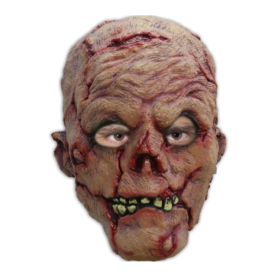 Avec ce masque, vous semblerez être un cadavre vivant tout droit sorti du monde de l'épouvante. Celui-ci représente un horrible visage de zombie blessé, et recouvre l'intégralité de la tête. Ces balafres rouges un peu partout, ces dents répugnantes, ce teint brun, tout comme une chair cuite, apportent une touche terrifiante à ce masque. Il est dédié aux hommes, à arborer lors de la fête des morts, ou des soirées Horreur.