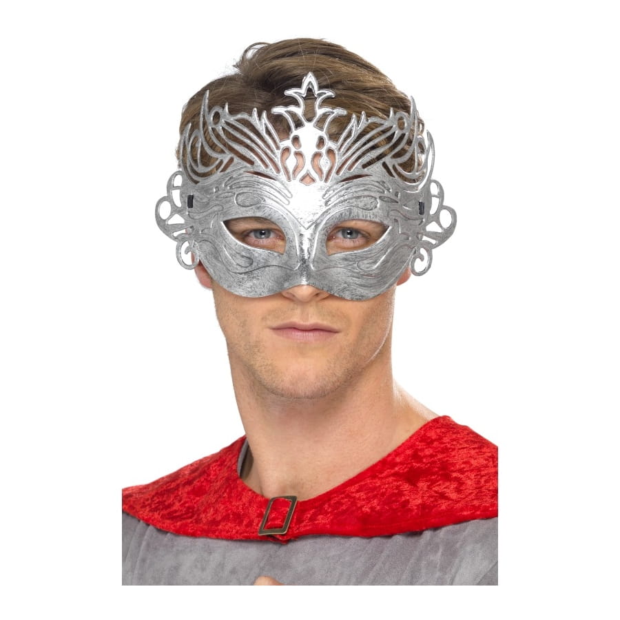Masque de guerrier de couleur argentée, pour homme. Ce masque est orné de magnifiques gravures et de designs très fins. Il pourra vous servir de déguisement pour une soirée vénitienne ou pour une tenue de guerrier de l'Antiquité.