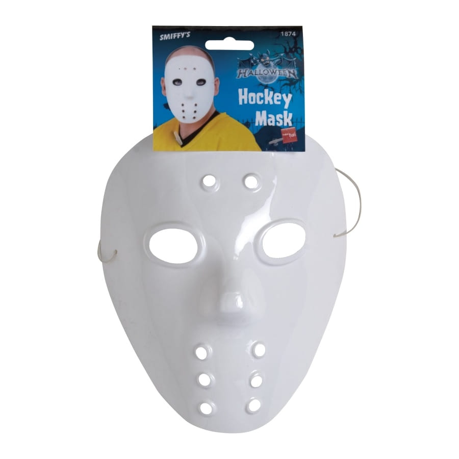 Masque d'Hockeyeur en PVC blanc, pour homme. Ce masque rappelle surtout celui du très fameux tueur en série mais peut également servir d'accessoire pour un déguisement de sport.