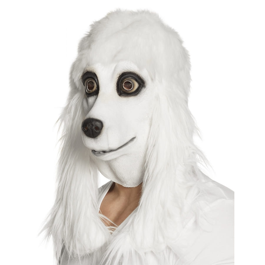 Alors finalisez votre transformation avec ce masque intégral de caniche blanc en latex.