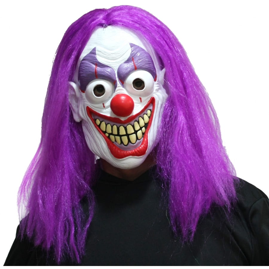 Les clowns ne sont pas toujours aussi drôles que vous le pensez ! Il existe certains spécimens rares que l'on peut qualifier de fous ou voire même de terrorisants ! Faites découvrir à vos proches un nouveau genre de clown à l'occasion d'Halloween ! Il vous suffira d'enfiler cet effrayant masque de clown cinglé. Il présente toujours un visage extrêmement maquillé mais cette fois-ci, il est muni de longs cheveux ! Ce modèle de couleur blanche et violette sera à la hauteur pour accessoiriser un déguisement sinistre !