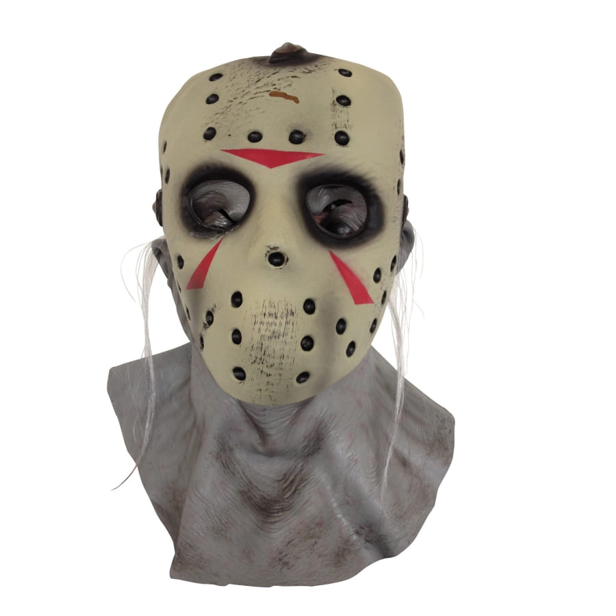 Le masque intégral de Jason avec partie détachable est un masque officiel de Freddy contre Jason&Trade. Parfait pour compléter votre déguisement d'halloween, il couvre totalement votre visage et votre cou. En le portant, vous vous vous retrouverez dans la peau de Jason, dans le film Vendredi 13. Il se compose d'un masque intégral blanc virant au gris, et d'un masque de hockey beige qui se fixe par élastique derrière la tête.