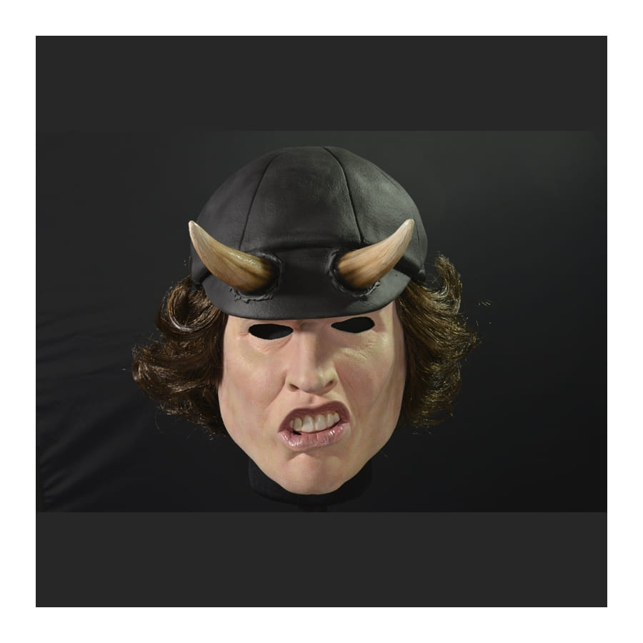 Lors de votre soirée à thème adoptez la rock'n roll attitude avec ce masque intégral en latex de Angus. Personne ne vous reconnaîtra avec ce masque de couleur beige pour homme avec un béret orné de deux cornes sur le haut. Avec ce masque Angus de AC DC, vous deviendrez une star le temps d'une soirée.