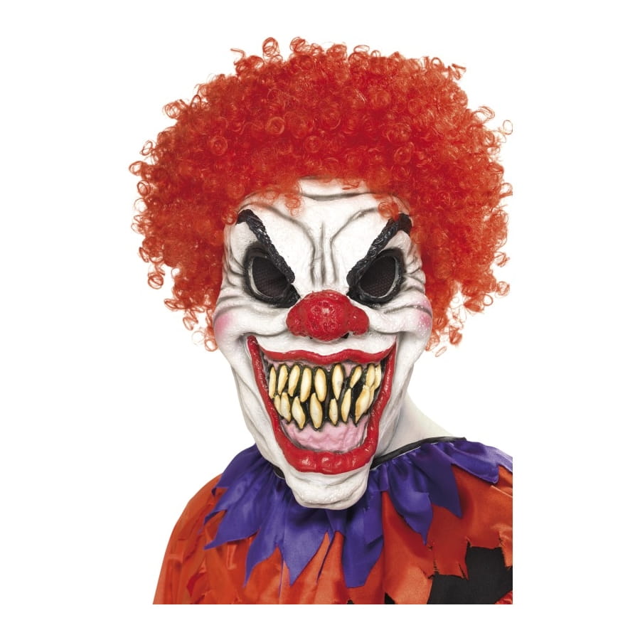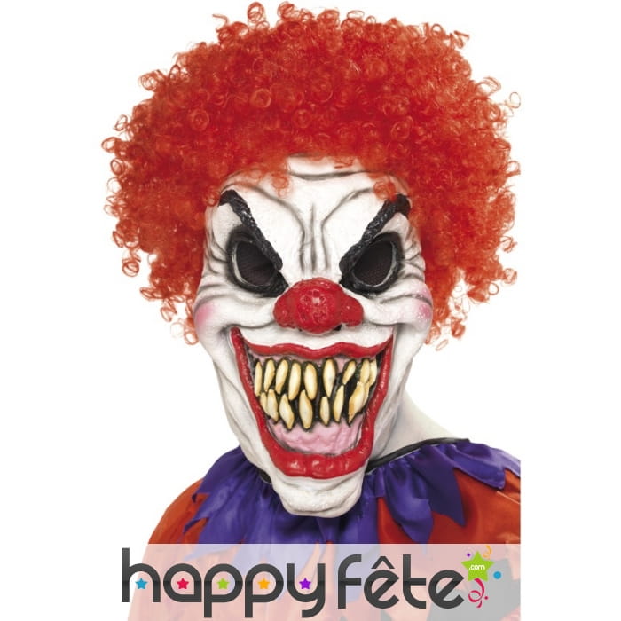 Masque de clown effrayant en latex, avec cheveux, pour homme ou femme. Le masque un visage de clown de couleur blanche avec une bouche à glacer le sang. Les cheveux sont bouclés, de couleur rouge. Avec cet accessoire, tout le monde se souviendra de votre déguisement d'Halloween!