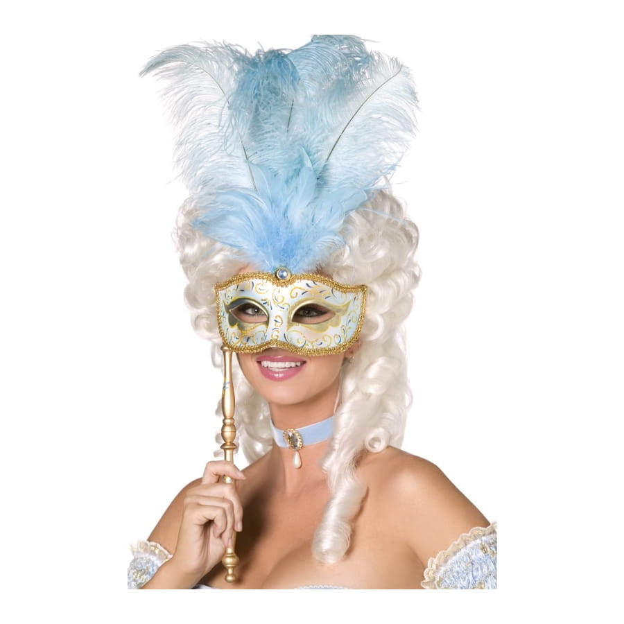 Avec ce masque vous serez la plus mystérieuse de toute. Vous pourrez le porter pour une fête sur le thème Venise ou encore pour une fête ayant pour thème le romantisme. Ce loup face à main est de couleur beige avec une manche de la même couleur ainsi que des plumes au centre du loup.