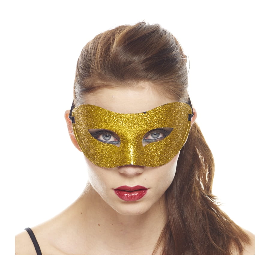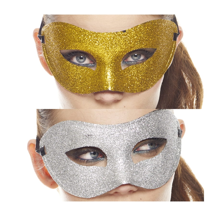 Ce masque loup recouvert de paillettes vous permettra de fêter la Nouvelle Année en toute discrétion et élégance, Mesdames et Messieurs. Il vous recouvrira entièrement les yeux, retenu par un élastique à l'arrière de la tête. Vous pourrez choisir entre un modèle argenté ou doré, selon votre convenance.
