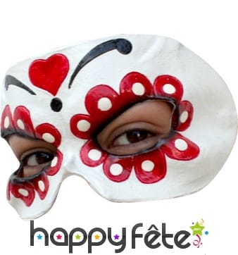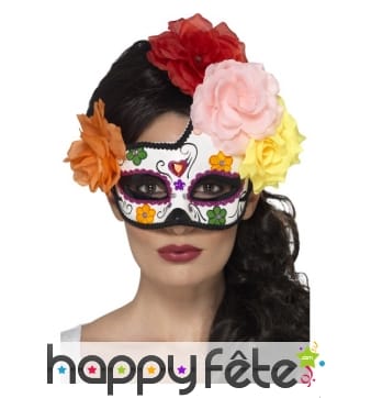 La fête des morts est une fête populaire qui se célèbre à travers tout le Mexique les 1er et 2 novembre. Misez sur cette tradition pour vous constituer de nouveaux déguisements, un large choix de masques et de loups sur le thème Mexique vous est proposé ici. Dans ce pays, il est de coutume d’utiliser des couleurs éclatantes, que ce soit pour décorer les autels ou pour faire les déguisements. Vous aussi, osez les couleurs et les motifs floraux en vous procurant l’un de nos fabuleux masques. Entrez dans la peau de La Catrina ou « Sa Majesté la Mort », un des personnages emblématiques de la fête des morts. Vous pouvez aussi jouer à la mariée d’Halloween ou devenir le seigneur des squelettes. Homme ou femme trouveront leur bonheur parmi les masques faciaux décorés de motifs floraux, les loups filigranes ornés de roses rouges, les masques intégraux représentant des têtes de squelette, les masques avec voile, etc. Cette collection inédite vous fera vivre des réjouissances mémorables à la mexicaine !