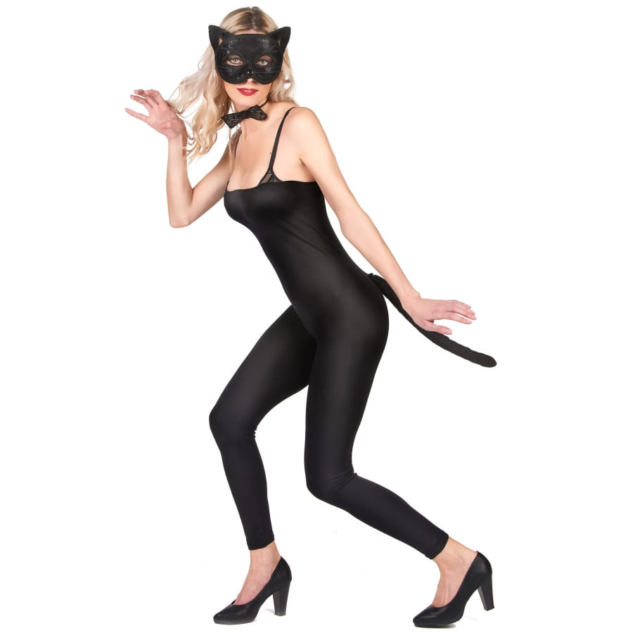 Cet ensemble Masque, noeud pap et queue de chat noir dentelle sera idéal pour compléter un déguisement de félin sexy lors d'une soirée romantique ou à thème.