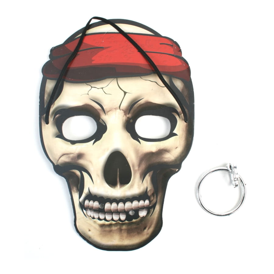 Vive Halloween et ses déguisements qui font frissonner ! Découvrez ce masque plat de pirate tête de mort spécialement dédié aux petits garçons qui n'ont pas peur de l'aventure. De couleur beige, il est accompagné d'une fausse boucle d'oreille afin de peaufiner à merveille un costume de squelette ou de pirate.